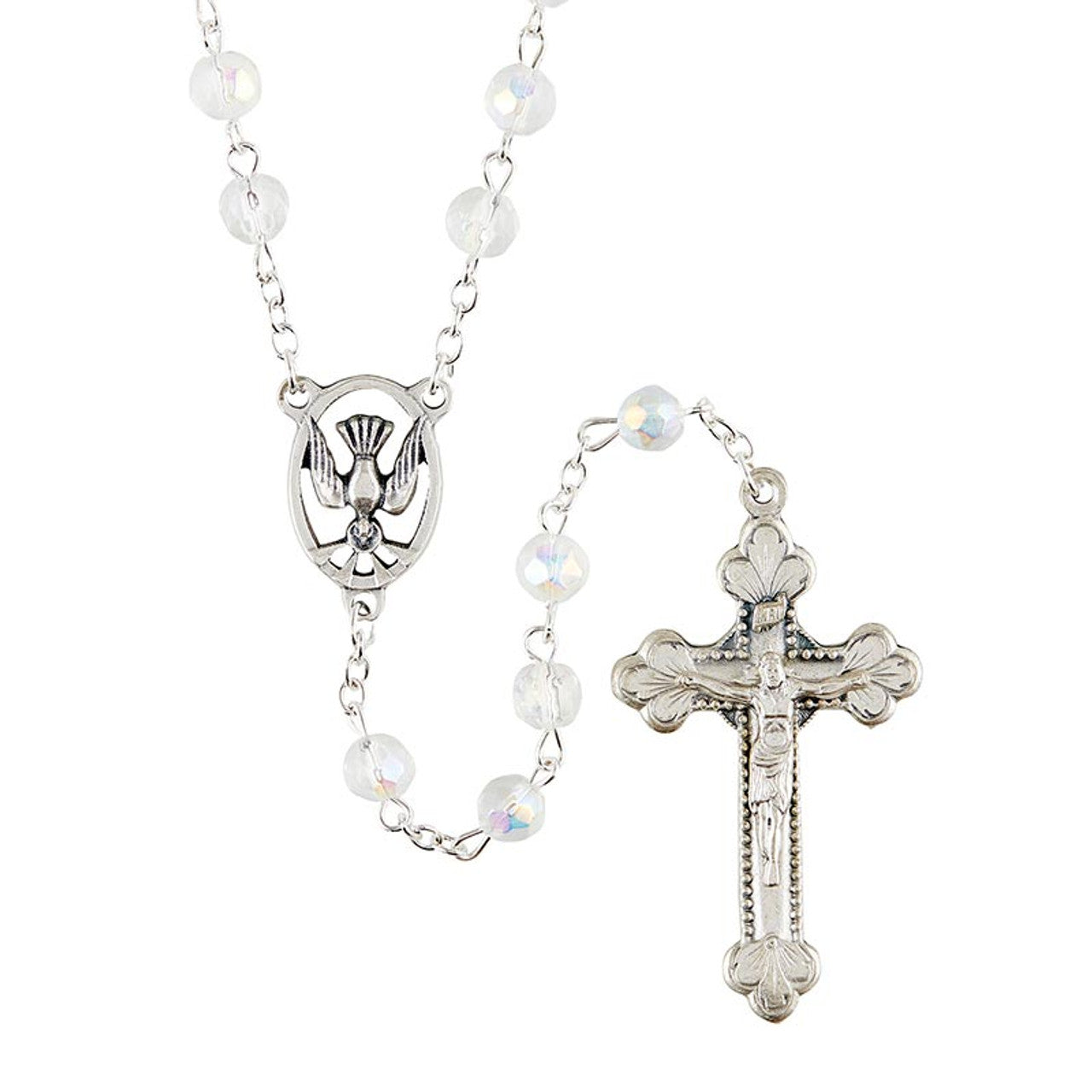 Italian-crafted with Holy Spirit dove centerpieces, these beautiful crystal beaded rosaries make excellent gifts for those making their Confirmation.
