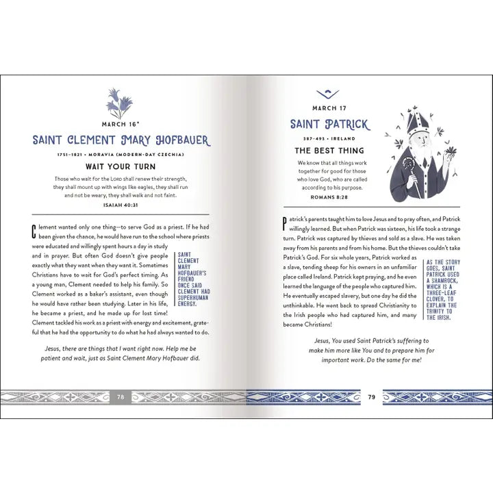 Inspiring a child's faith with true stories of heroism and faithfully following God, A Saint a Day is an engaging daily devotional for kids ages 8 to 12 that shares some of the most significant and entertaining stories of the saints.